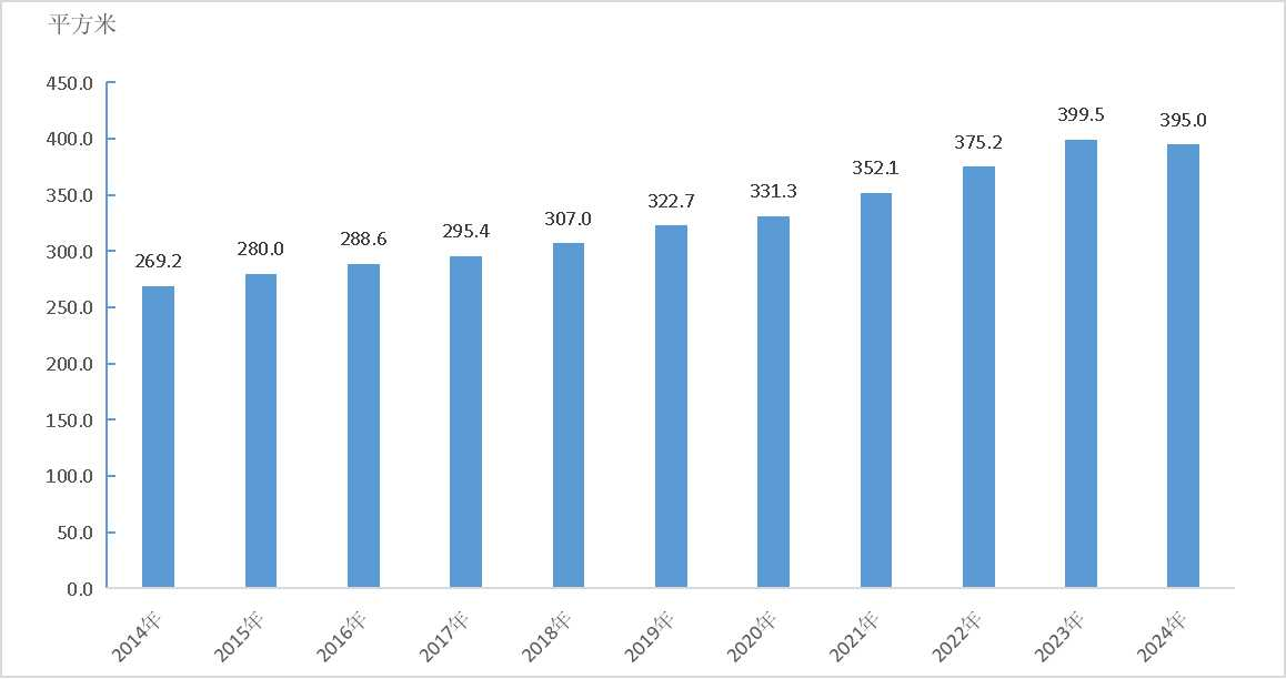 图3:2014-2024年全国平均每万人群众文化设施建筑面积